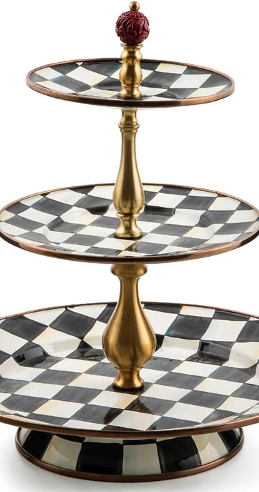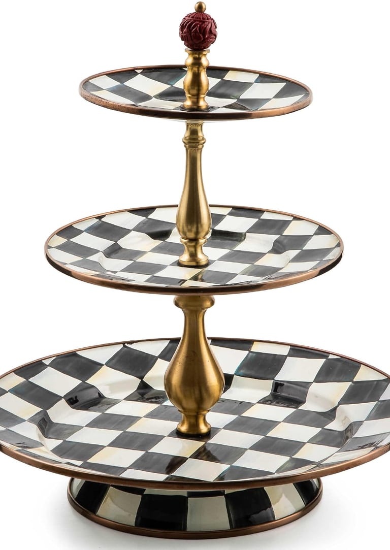 3 tiered, black and white checker dessert stand will make a statement in your halloween sweets display!